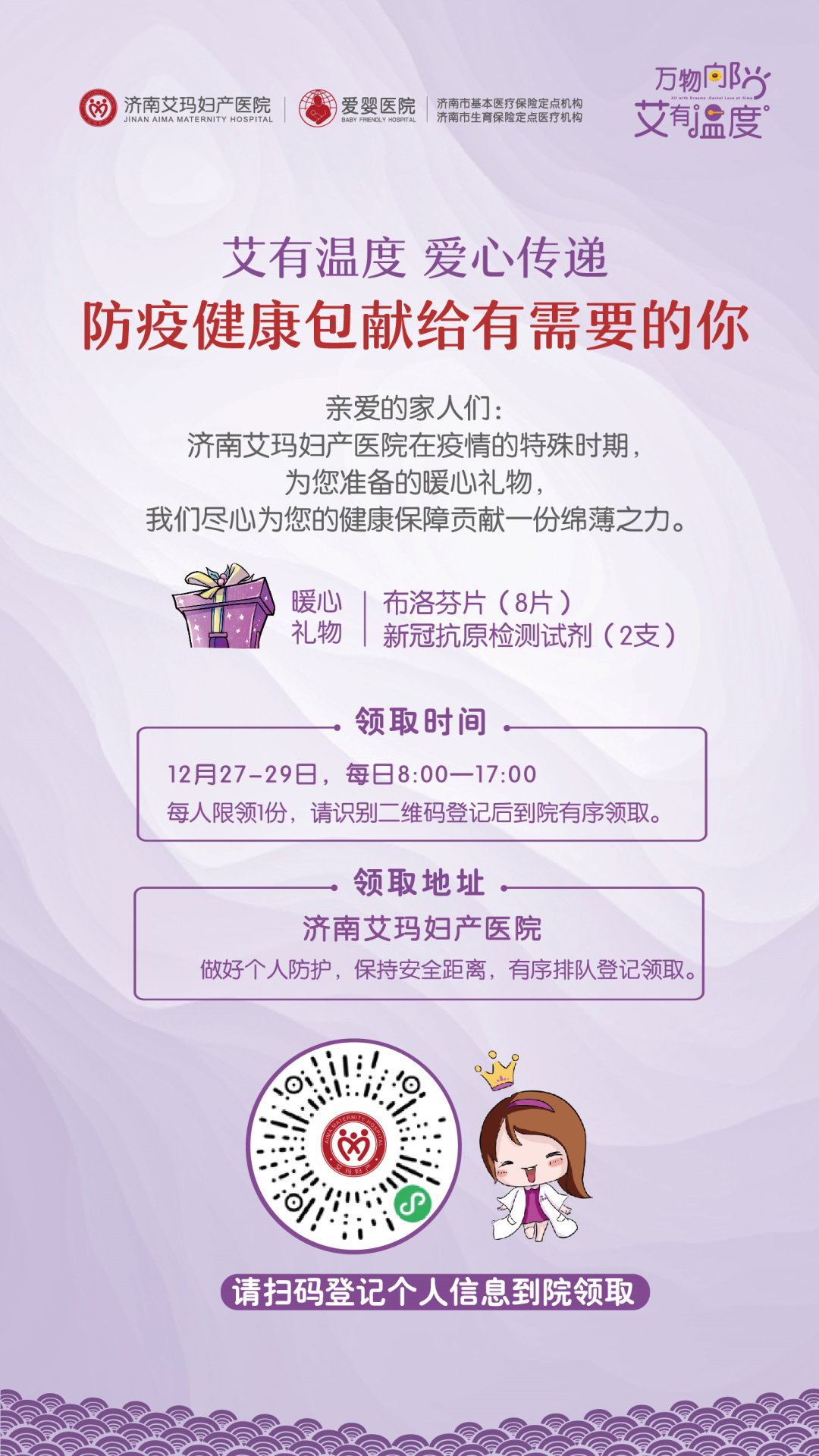 领取地点:济南艾玛妇产医院一楼大厅防疫健康包发放处