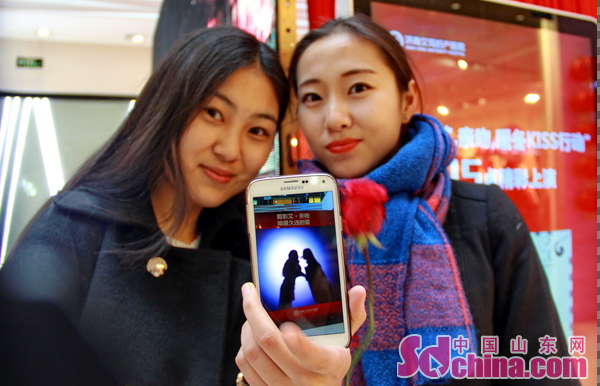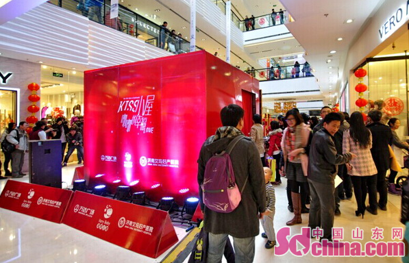 中国山东网1月17日讯(记者 周玉森)17日下午,济南经四路万达广场间剪影kiss小屋吸引了众多市民驻足体验。这间小屋的面墙是层轻薄的帷幕,人在小屋里,通过灯管照射到帷幕的背影就形成了朦胧的“剪影照”。浪漫的镜头前含蓄的剪影不但带来了爱的温馨,也保证了参与者的隐私。