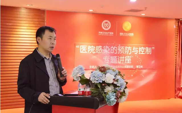 此次培训邀请山东省医院感染管理监控办公室李卫光主任进行授课。李主任通过列举些院感实例,使大家意识到医院感染预防与控制的重要性,结合临床工作中常见的问题举例说明,强调了加强医院感染管理知识学习的必要性,并就医院感染诊断标准及核心制度、手卫生与感染控制以及多重耐药菌感染监控流程等内容进行了生动讲解。
