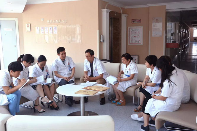贲晓明教授与产科、新生儿科、医务科、业务院长进行交流,了解医院的状况。