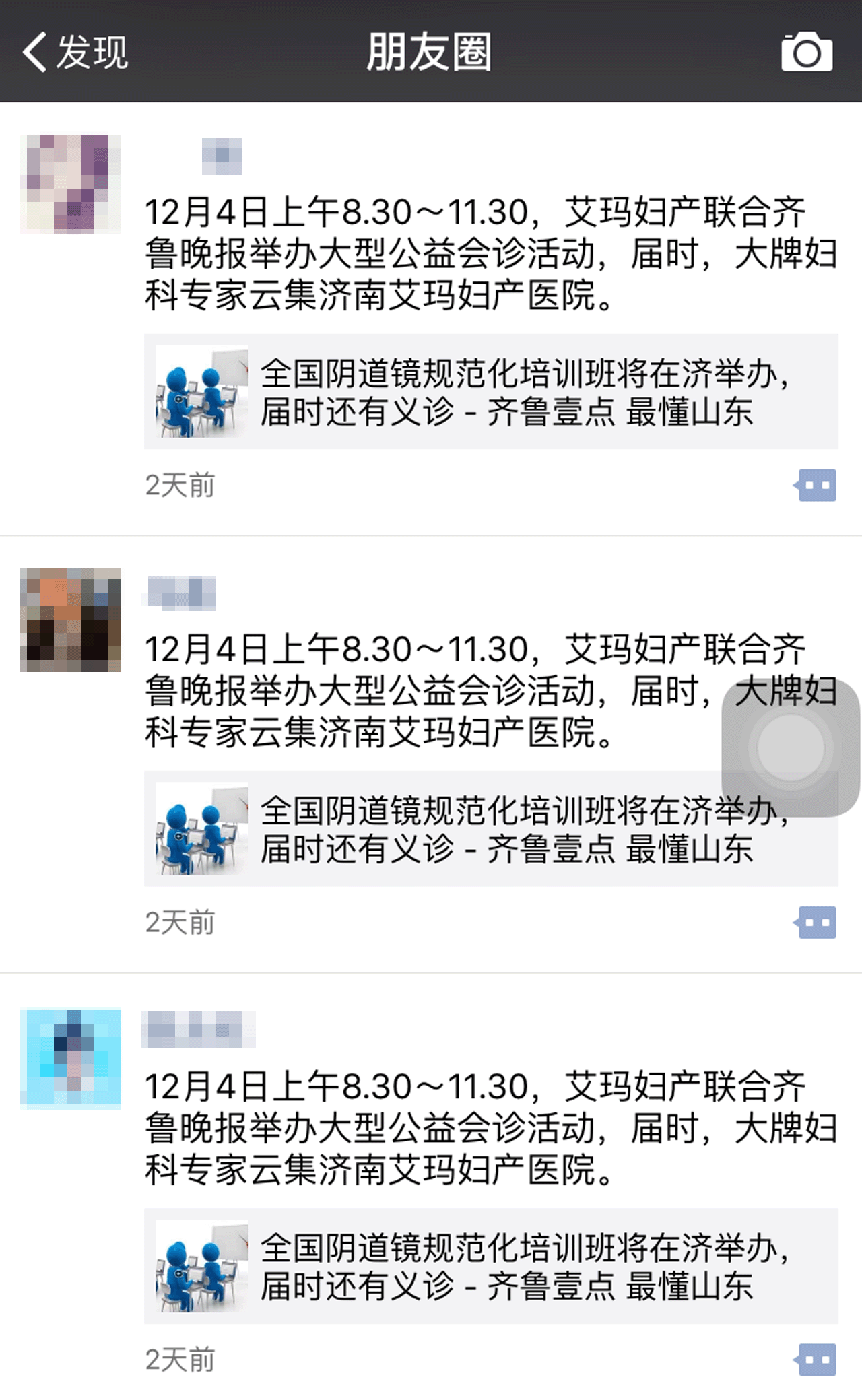 12月2日—4日,来自全国各地的知名妇科专家将在济南艾玛妇产医院进行专题讲座,4日上午还将举办大型妇科公益会诊。所以近这两天,小艾的朋友圈是这样的↓↓↓