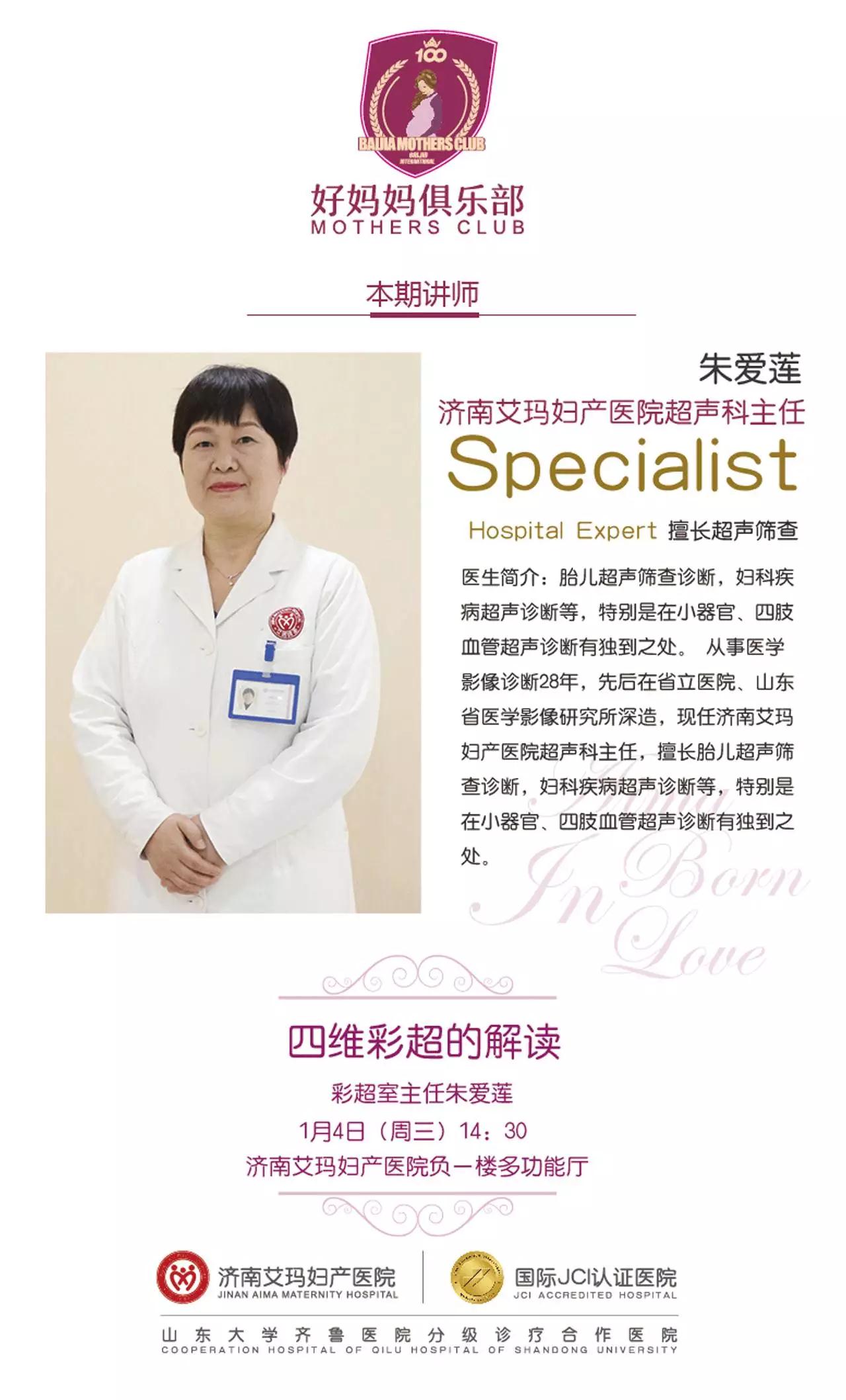 彩超单看得准爸妈们头雾水?1月4日(本周三)来艾玛妇产妈妈俱乐部吧,彩超室主任朱爱莲来为妈妈们解读彩超单上的“奥秘”。