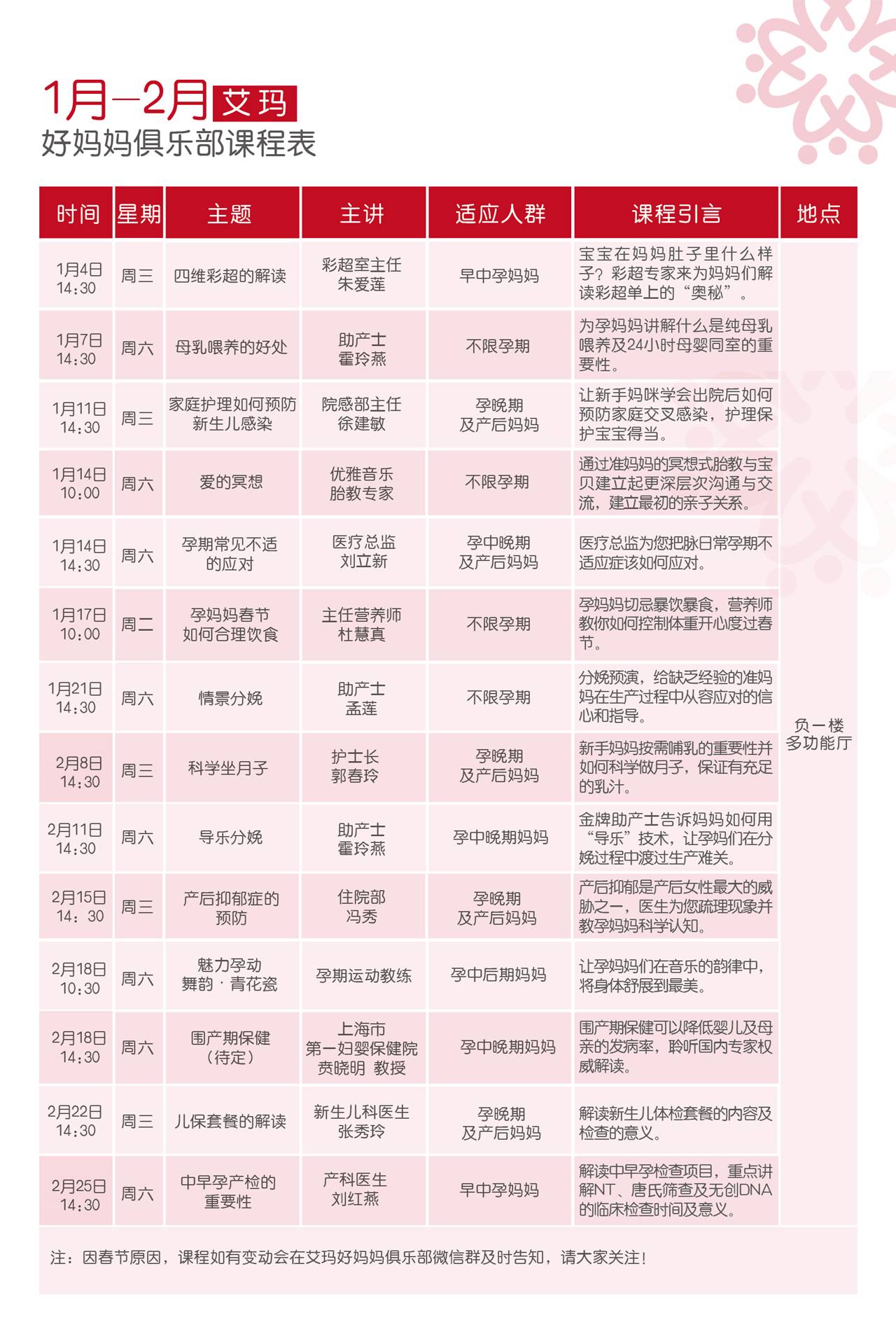 活动地点:济南艾玛妇产医院(负楼多功能厅)