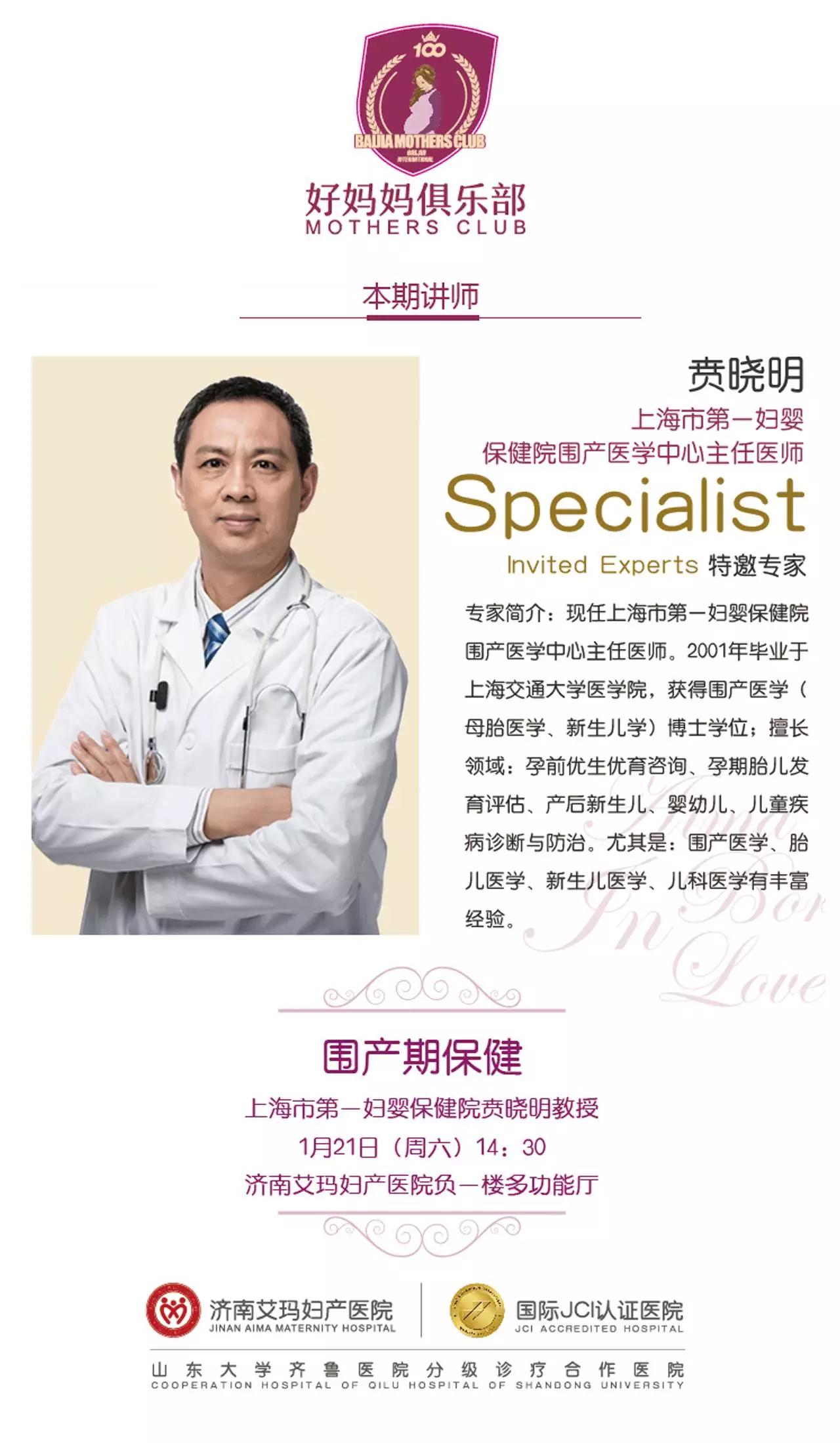 说到“围产期保健”,就想起我们熟悉的贲晓明教授,“幽默有趣、平易近人、医技高超”是宝妈们对贲教授的评价。为了母婴安全与健康,本月21号,贲晓明教授再次莅临艾玛妇产,和孕妈们面对面,说说围产期的那些事儿。
