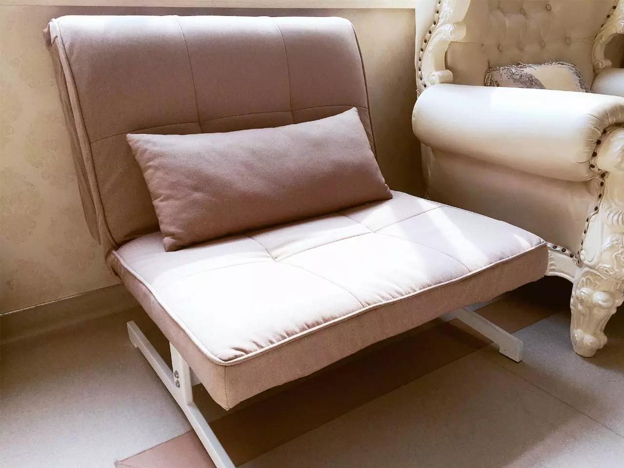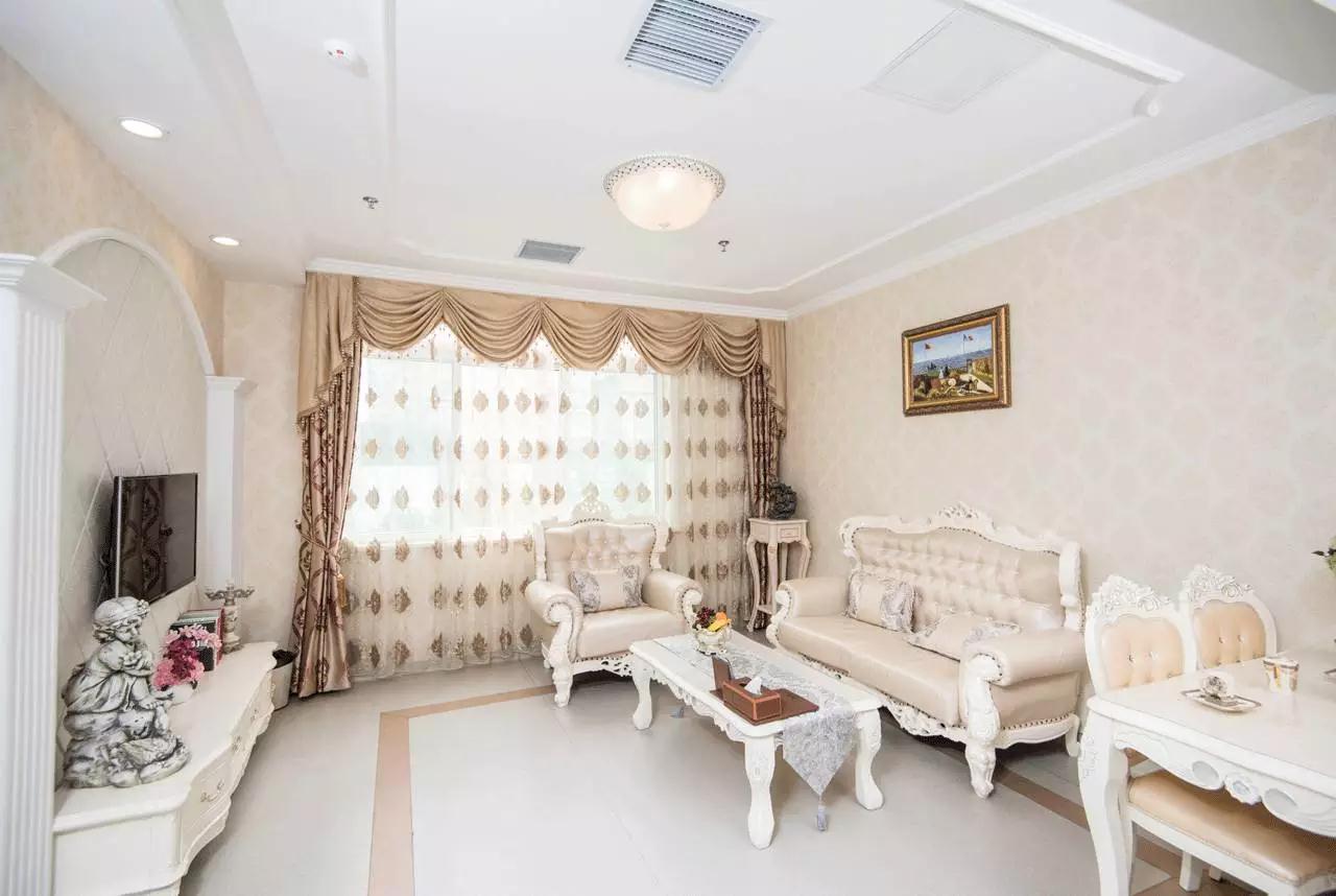 客厅宽敞明亮,有沙发有电视,还有餐桌和茶几,跟公寓差不多,有家的味道。墙角处是一个折叠床,应该是方便家属在这里彻夜陪护的,这一点很贴心。
