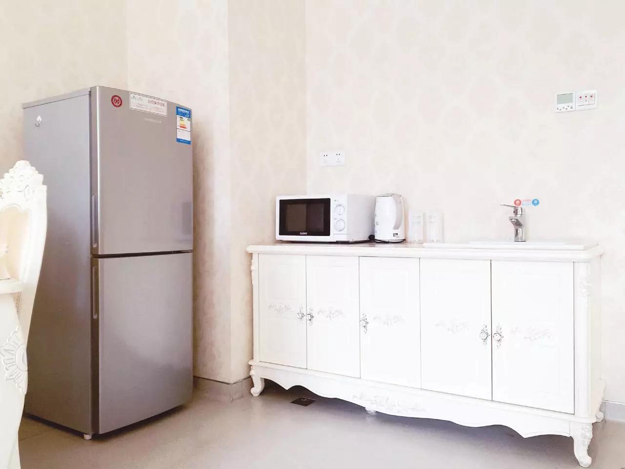 客厅靠门的位置还有一个备餐台,有微波炉、热水壶,有橱柜,门旁还有衣柜,收纳空间足够满足一家人住上几天了,生个孩子就当到医院旅游一周吧。