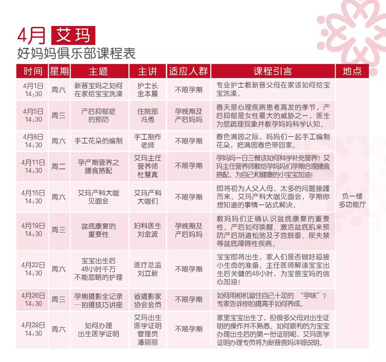 活动地点:济南艾玛妇产医院(负一楼多功能厅)