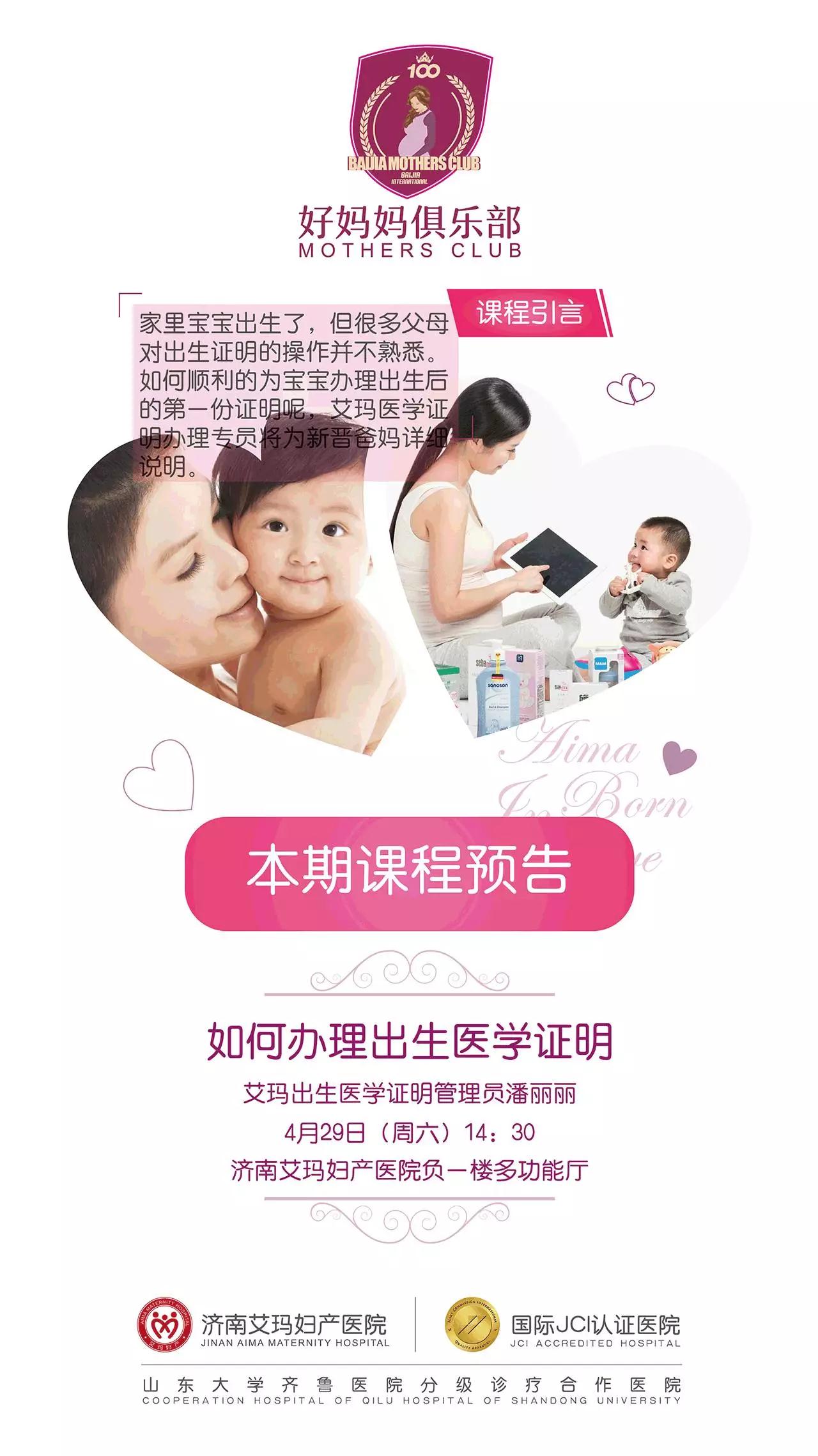 如何顺利的为宝宝办理出生后的第一份证明呢?本月29日(周六)来艾玛好妈妈俱乐部,艾玛妇产医学证明办理专员潘丽丽将为新晋爸妈详细说明。
