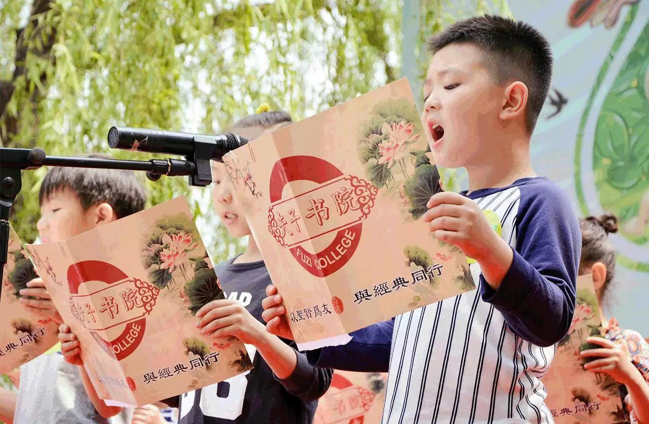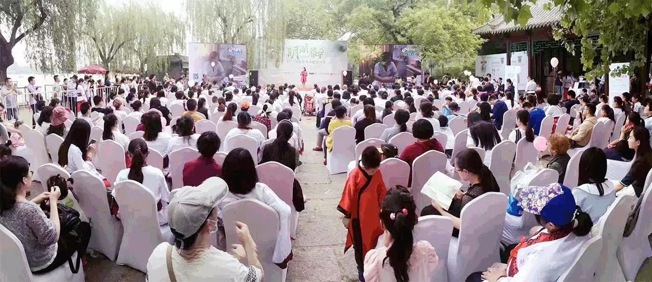 此次国学胎教音乐会,宝妈集体着汉服参加,现场汉风飘飘,宛如穿越到了古代。活动以一段儿童朗诵的《千字文》拉开了帷幕。在孩子们稚嫩清脆的朗诵声中,宝妈们感受到传统国学的优美和高雅。