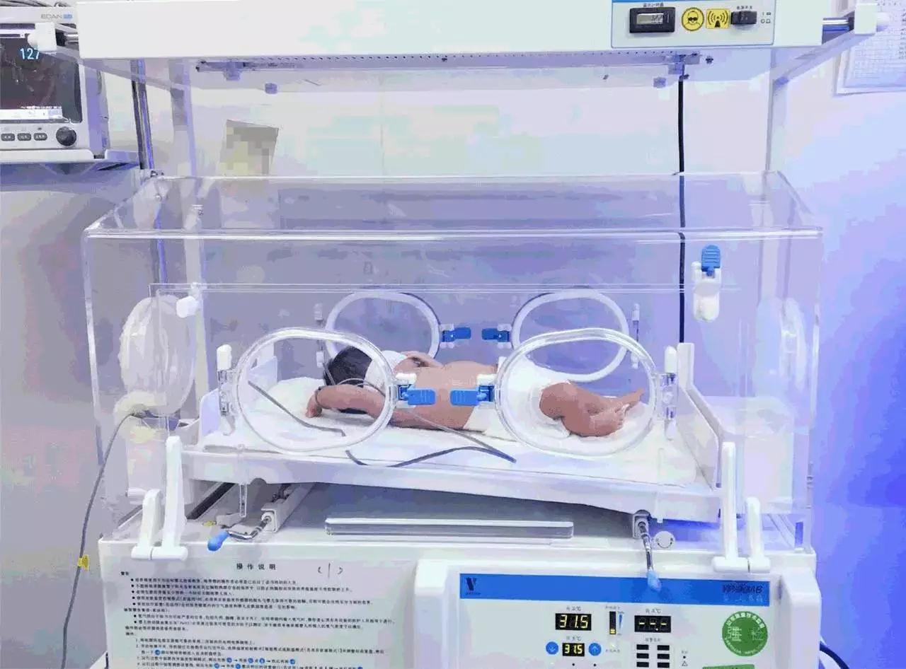 (图为艾玛妇产保温箱中的新生儿,医护人员时刻观察新生宝宝的情况)