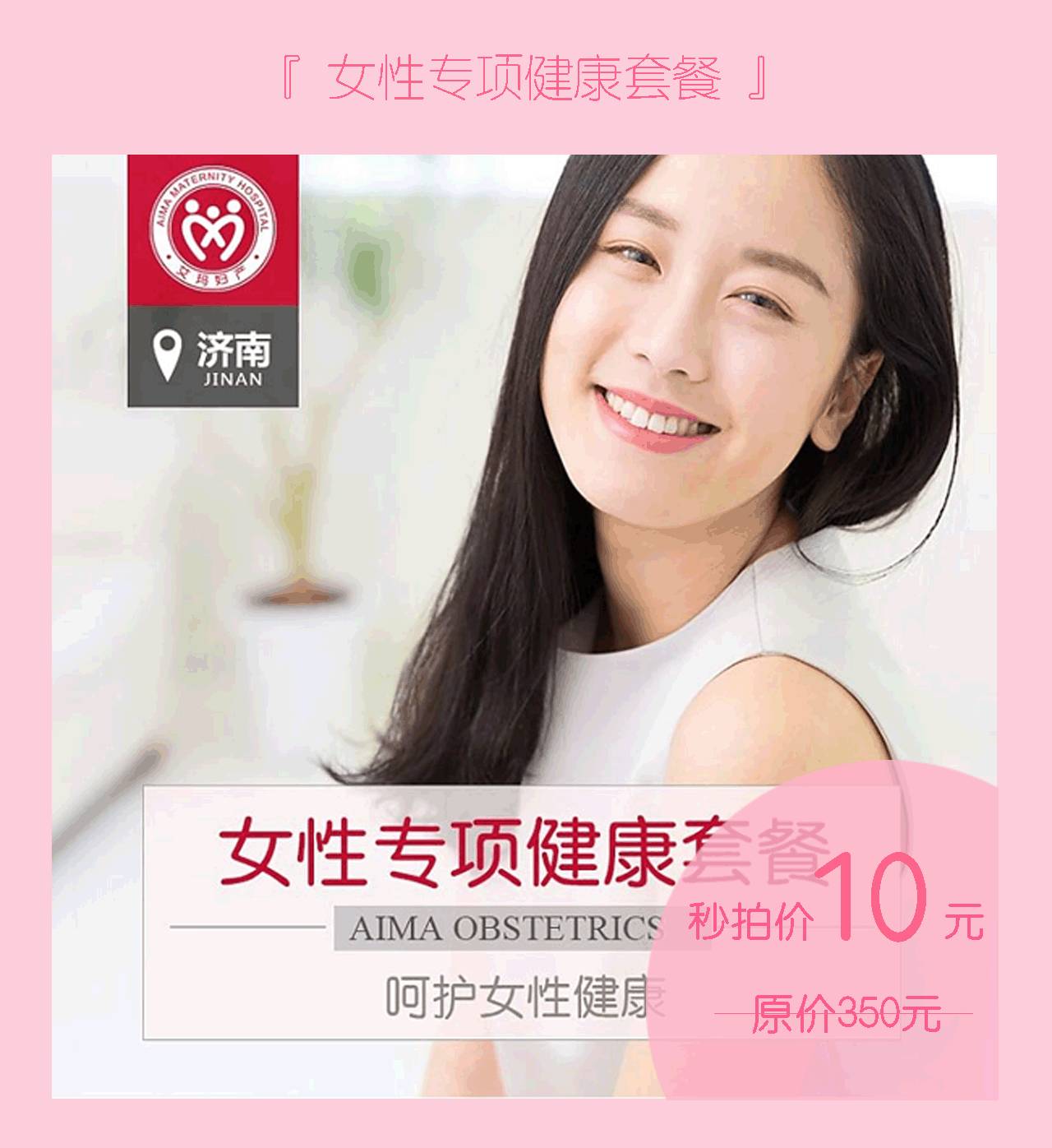 为了让更多女性享受到健康的呵护,济南艾玛妇产医院特推出10元女性专项健康套餐,在这个炎热夏天,让您与健康相伴,解决姐妹们的妇科疾病困扰。 ”