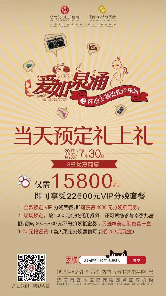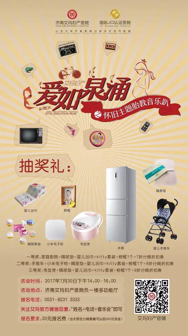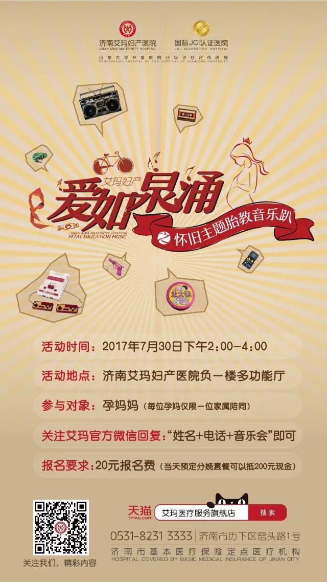 2017年7月30日(周日),艾玛妇产诚邀宝妈到场聆听爱如泉涌之艾玛妇产怀旧主题胎教音乐趴,音乐会的现场布置将以70、80、90年代特色为主,件件怀旧小物件都能勾起儿时回忆,带宝妈找回那段美好的旧日时光!听经典年代名曲,还有好礼拿呦~