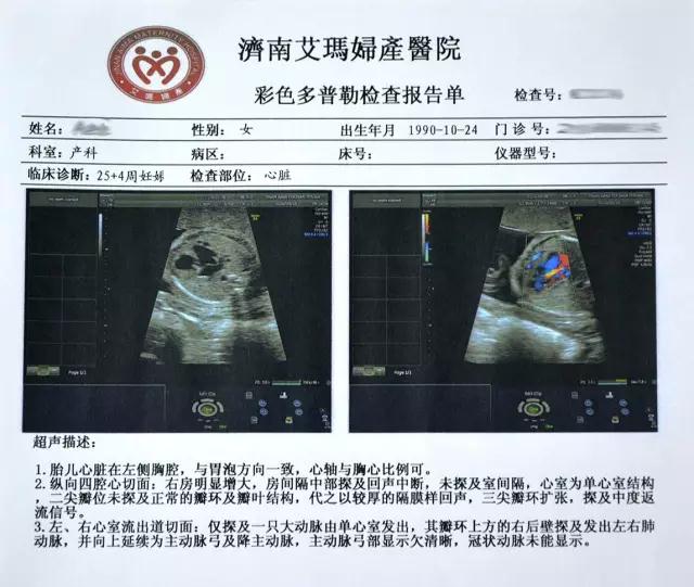 济南艾玛妇产医院超声科专家朱爱莲主任看了下报告单,告诉他们:“检查发现,胎儿是单心室,属于非常严重的胎儿心脏畸形”。听到这个消息,夫妻俩顿时面露戚色,宝妈刷下流下了眼泪……
