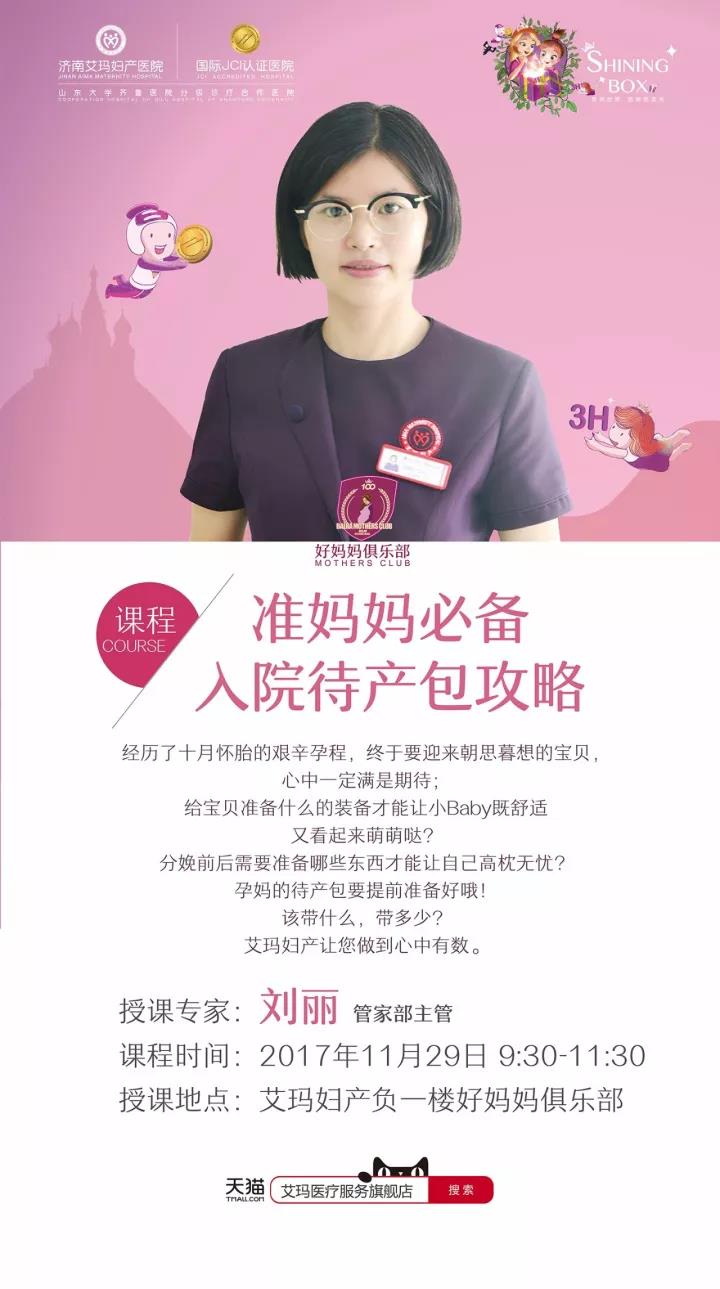 11月29日,济南艾玛妇产医院专家为宝妈讲解,住院期间应该为自己和宝宝准备哪些物品,让宝妈提前参考、准备待产包,随时可以轻松入院。