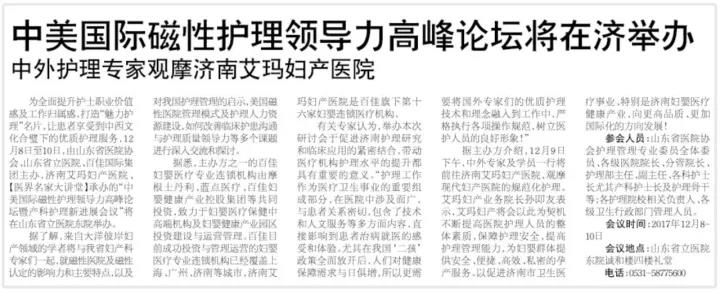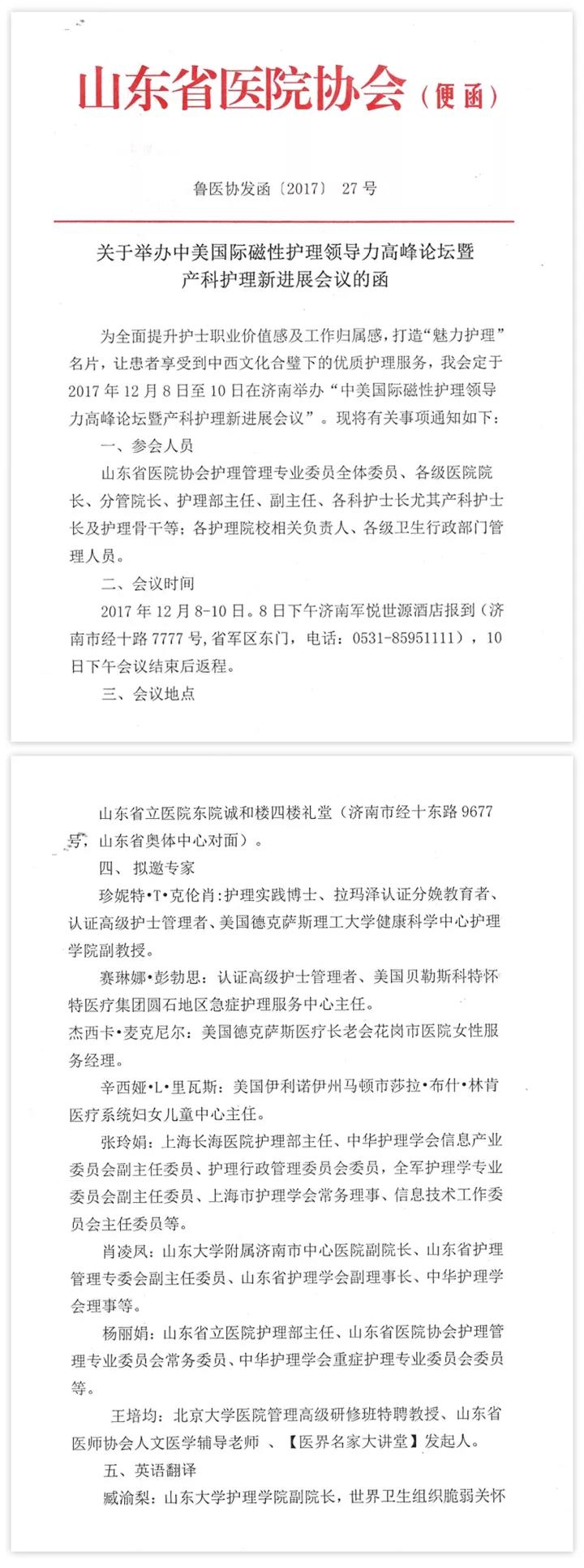 2017年12月8日至10日,“中美磁性护理领导力高峰论坛暨产科护理新进展会议”将在济举办。
