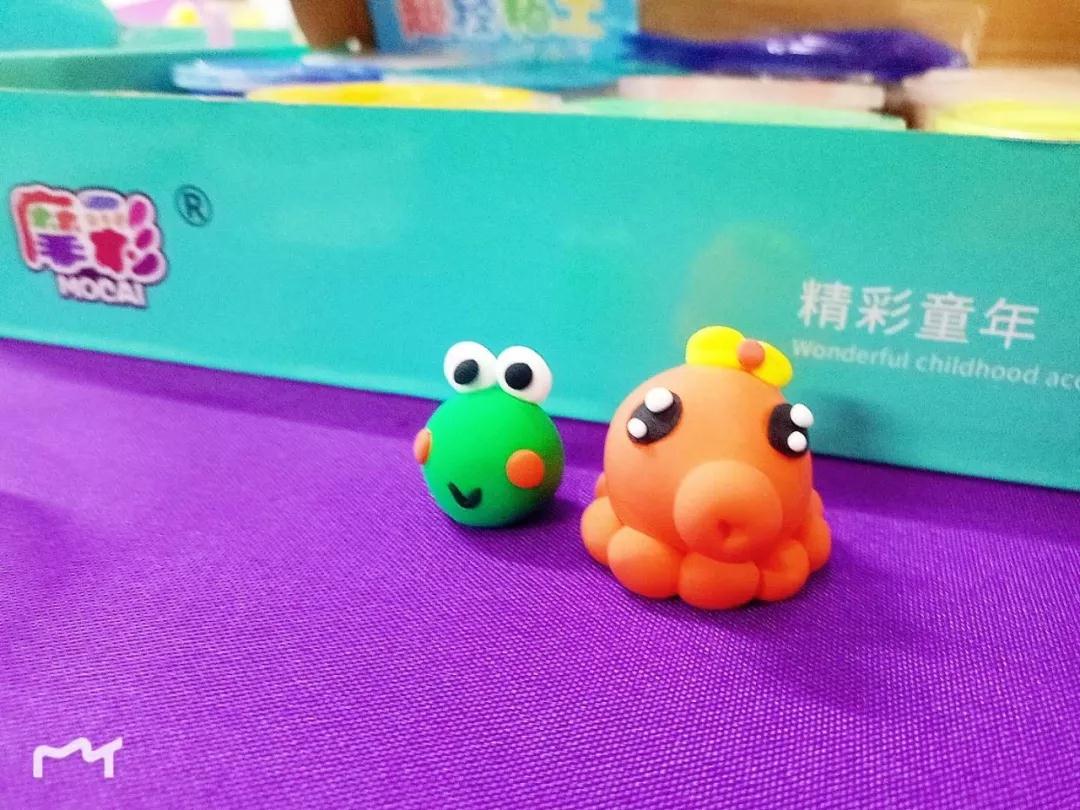 两个小小艺术家,明晃晃的眼睛闪烁着亮光。有些傲娇的表情可爱非常,就连自己手中的毛毛虫也是帅的十分有特色,蝴蝶颜色搭配很好。其实最难做的就是眼睛,看我们的小艺术家聪明的拿出白色的粘土贴在上面,真是心灵手巧。