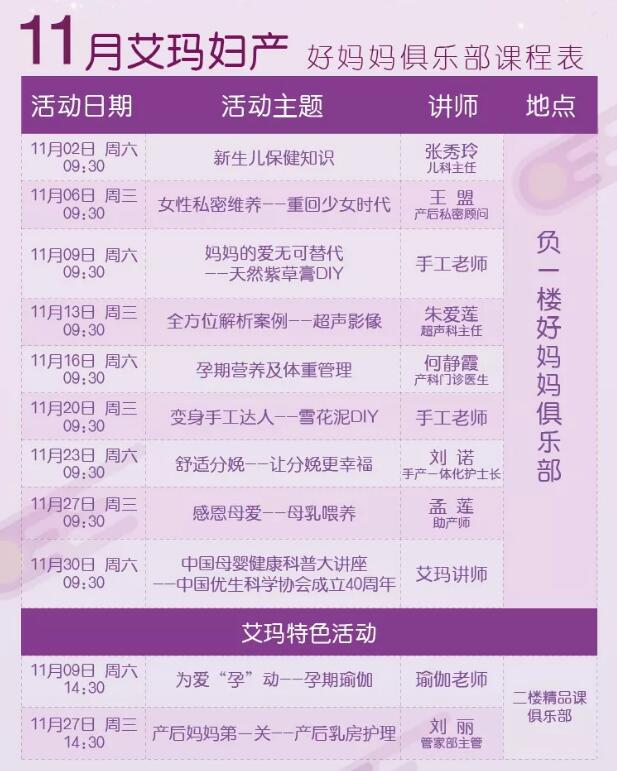 十一月课程表新鲜出炉,为了宝宝做一个不逃课