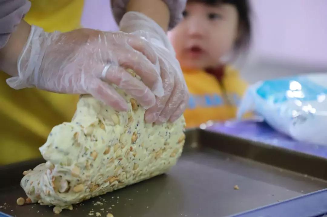 宝妈们齐聚在一起,手工制作牛轧糖,