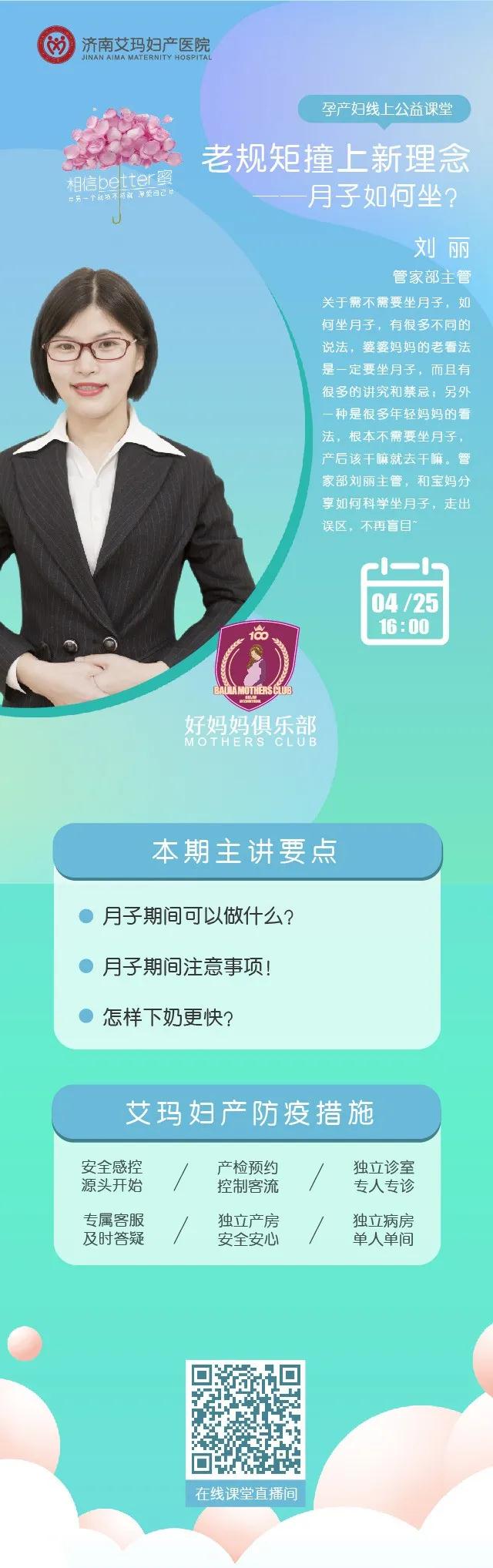 宝妈月子期,家里的长辈都会给到一些建议,但是有些建议不一定是宝妈可以接受的,如何分辨这些老规矩是不是科学的呢?4月25日,好妈妈俱乐部,为宝妈开课讲一讲月子如何做!