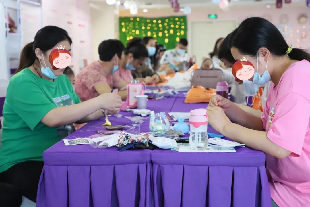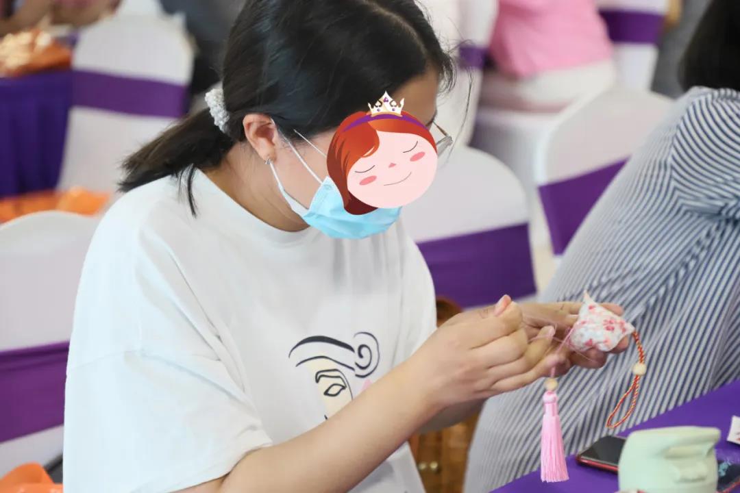 宝妈们捏起针线,缝一缝香包,串一串配饰,在手工老师的指导下,细心地制作着五彩斑斓的香包。