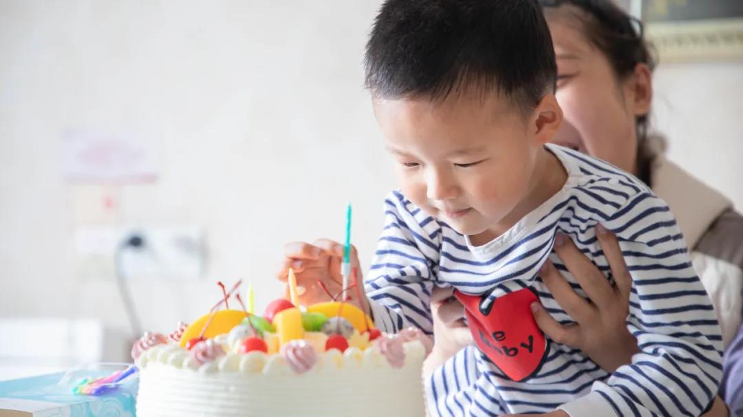 给弟弟插上了生日蜡烛