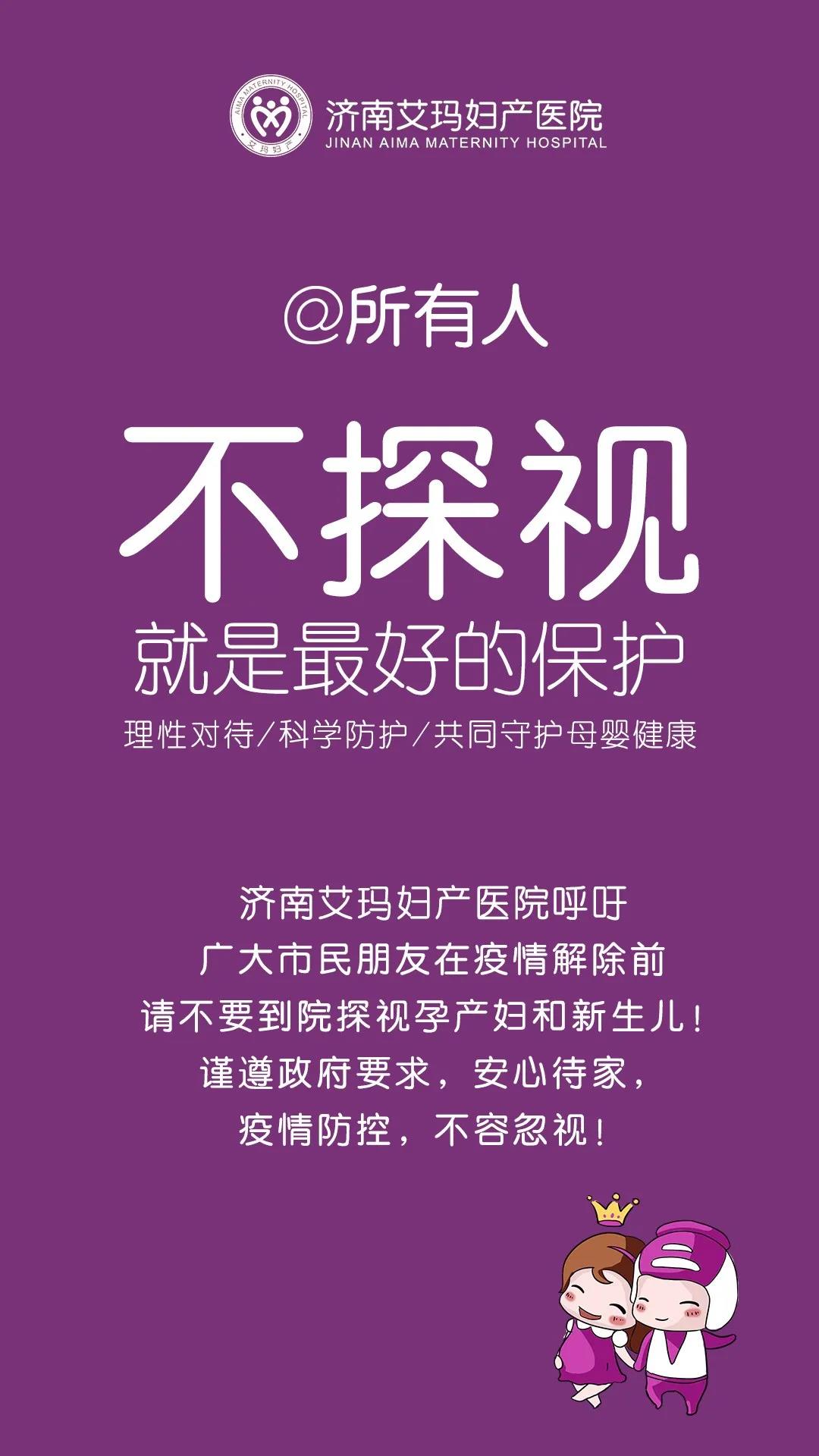 在这个特殊时期,疫情防控不松懈,济南艾玛妇产能做的,就是抓紧抓细抓实疫情防控工作,通过严防死守,为母婴提供个安全就诊的环境,全力保障每位宝妈和宝宝的健康,感谢您的理解和配合!