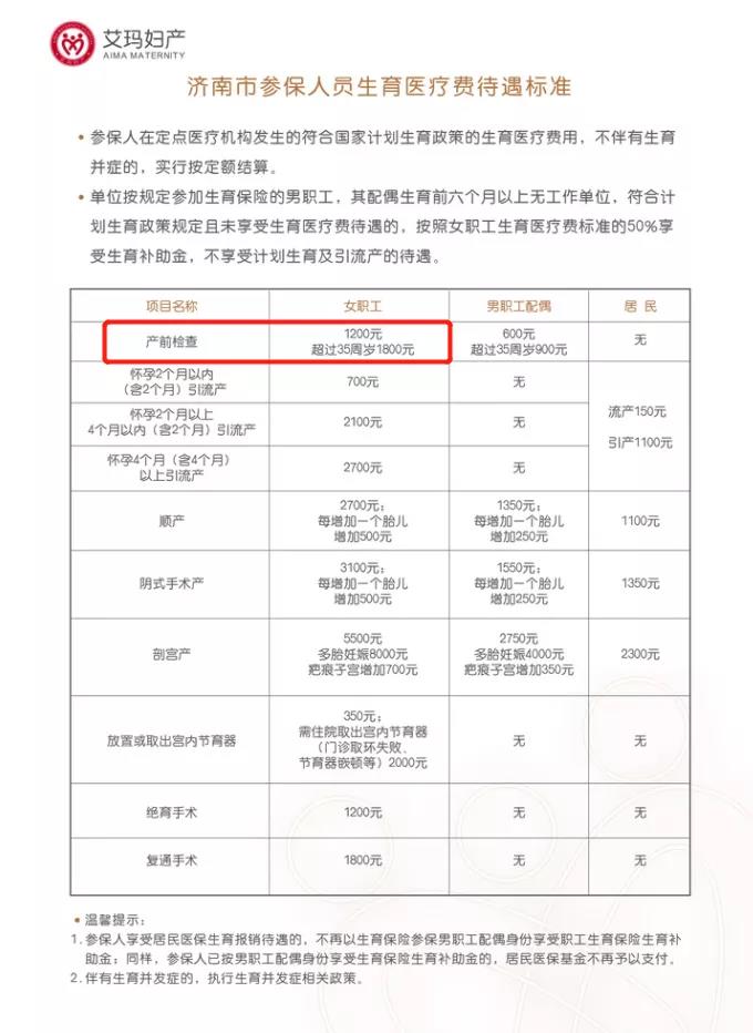 一、参保人在生育保险定点医疗机构发生的符合国家计划生育政策的产前检查费用,实行按人头定额结算,标准为1200元,超过35周岁(含35周岁)怀孕的增加600元。