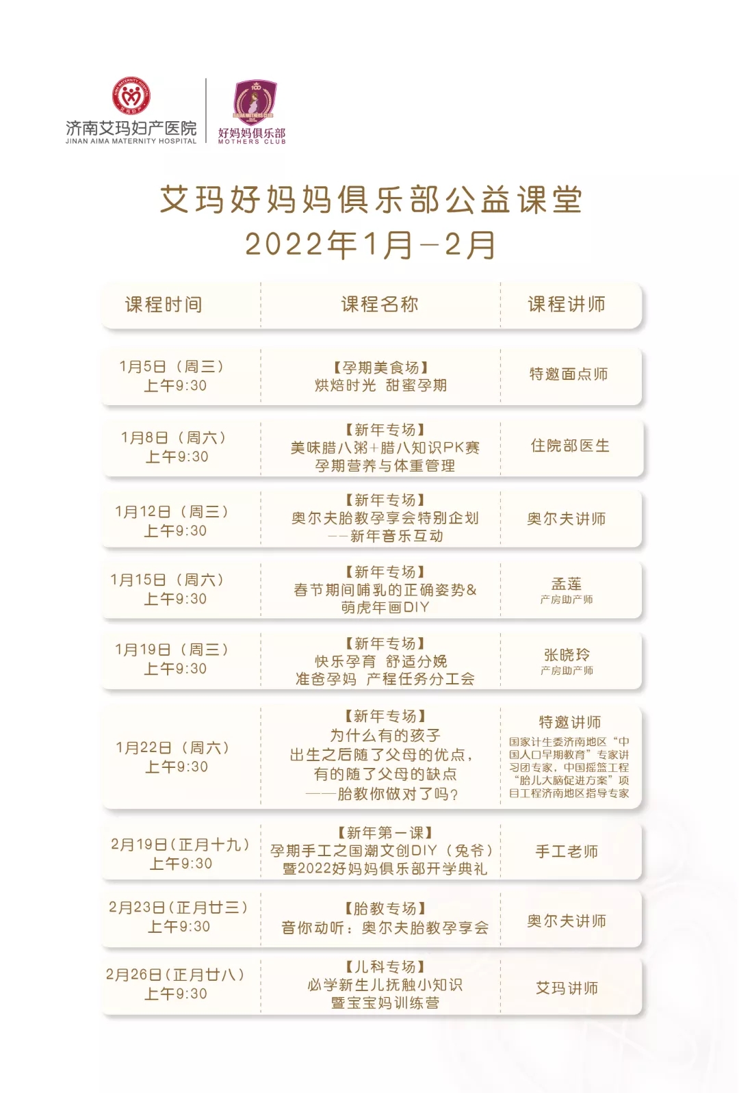 好妈妈俱乐部 2022年约起来,新年课程表抢鲜看!