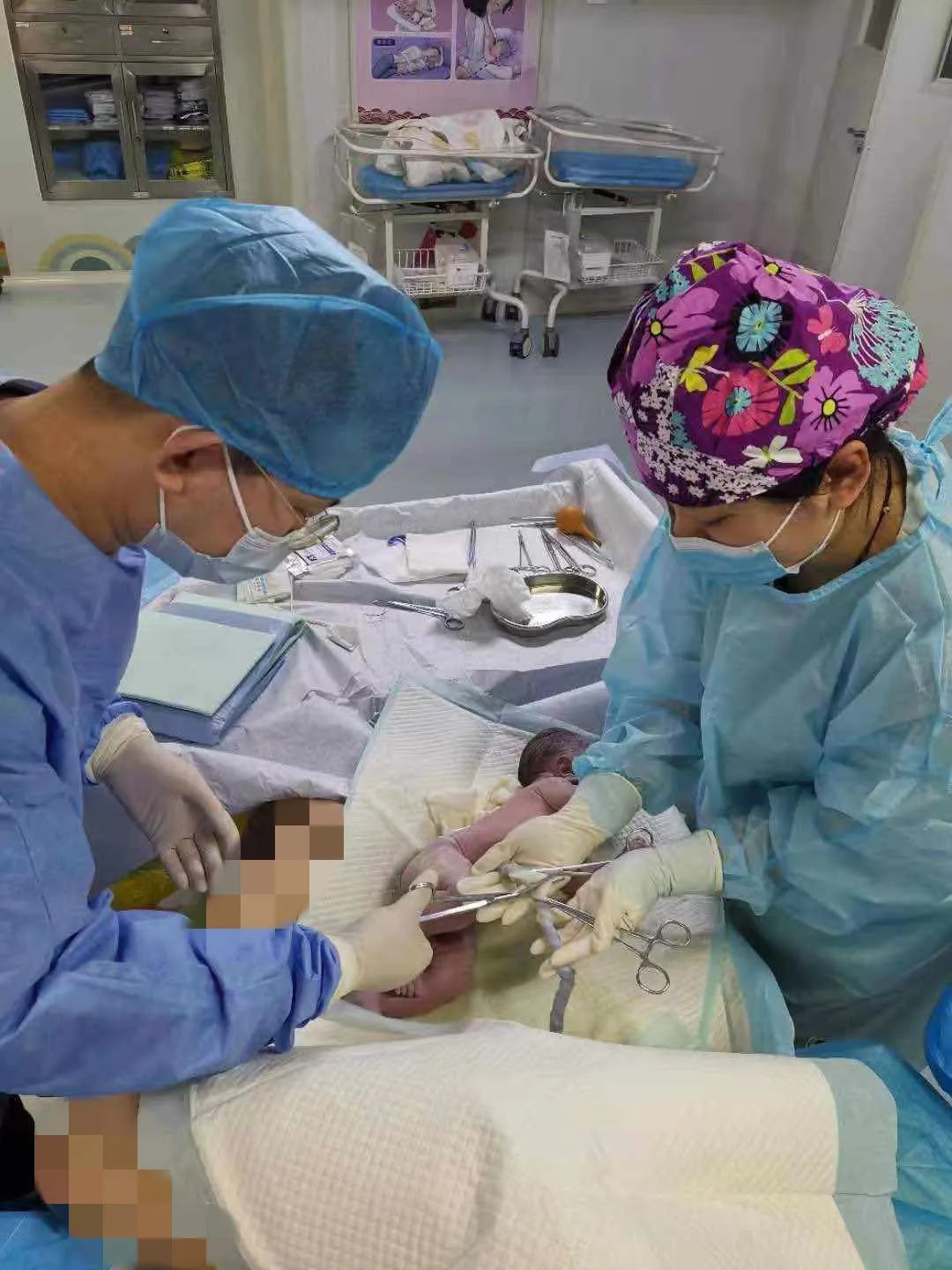 第三产程时:宝宝出来后,可以早点把宝宝抱给宝妈看,同时让宝宝早吸吮早接触。